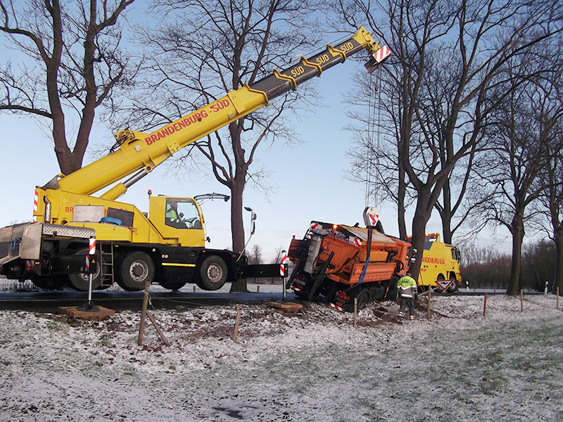 Wir bergen Fahrzeuge und Geräte aller Art bis 40T nach Unfällen oder sonstigen Havarien aus allen denkbaren misslichen Lagen. Dazu verfügen wir über die erforderliche moderne Spezialausrüstung, ein Team von Fachleuten und eigene schwere Krantechnik.